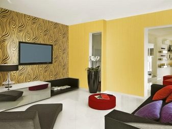 Декорирането на стените с два различни вида тапети в наситени цветове също не си струва.. По -добре е да комбинирате ярък и сочен цвят с неутрален. Същата ситуация е и с платна, върху които има рисунка. Тук се препоръчва да комбинирате тапети със спокоен и лаконичен дизайн..