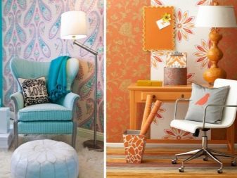 За да улесните подхода към избора на тапет, можете да разгледате по -отблизо някои примери за различни видове комбинации:
