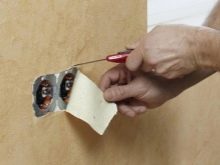 Когато става въпрос за контакти и ключове, ще трябва да ги развиете за удобство. Когато залепвате платното към изход или превключвател, направете два малки диагонални разреза на това място. След това внимателно отрежете малка част от тапета, оставяйки малка празнина. Тя може да бъде добре прибрана под корпуса на контакта или превключвателите. След като се справите с това, можете безопасно да завиете крепежните елементи.
