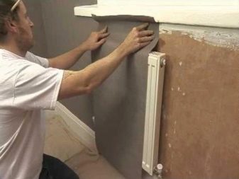 С батериите нещата са малко по -сложни. Въпреки че, ако приложите изобретателност и хитрост, тогава можете да се справите с тапетирането много лесно, без грешки. От горната част на батерията до долната част на острието трябва да се направят няколко диагонални разреза. Това ще ви позволи да управлявате тапета по ваш вкус. А шевовете зад батерията няма да бъдат забележими и по никакъв начин няма да развалят външния вид на стаята..