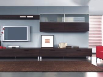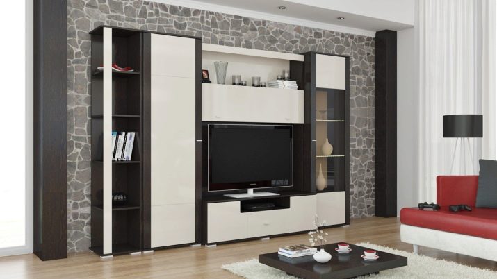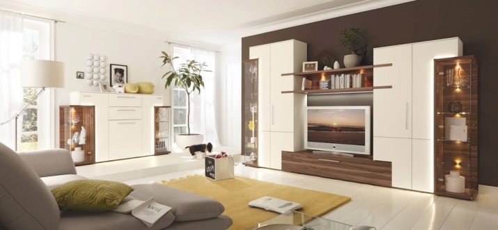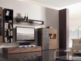 Често корпусните мебели се състоят от няколко части. Рафтове за книги, рафтове, място за телевизор, шкафове, стъклени рафтове и малък скрин или гардероб изглеждат страхотно в интериора, защото всички тези елементи са направени в една и съща цветова схема и стил.