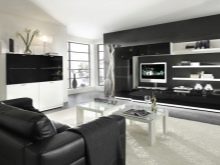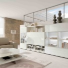- Минимализъм. Ако изборът се е спрял на стил като минимализъм, тогава си струва да разгледате някои от неговите характеристики. Дори самата дума „минимализъм“ предполага липсата на голям брой мебелни елементи в интериора. Спокойните плътни цветове, най -често бели или черни, са присъщи на този стил. Корпусните мебели обикновено са изработени от стъкло и метал, нямат закачлив декор. За такива мебели са важни яснотата на линиите и функционалността. Важно е тя да бъде възможно най -удобна и в същото време да не претрупва хола. Хардуерът и дръжките обикновено са скрити, а вратите за мебели често се отварят с леко натискане..