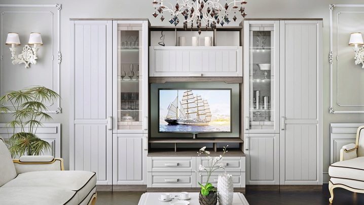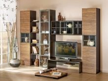 През 21 -ви век телевизорът е важна част от всеки интериор, помислете къде ще стои и започнете от това място. Сдвоените мебели могат да бъдат поставени отстрани на телевизора, опитайте се да подредите всичко симетрично. С помощта на рафтове и рафтове можете да украсите всеки интериор и да поставите върху тях любимите си книги и снимки. Ако имате малък апартамент, тогава наличието на килер, като елемент в корпусните мебели, лесно ще реши проблема със съхранението на неща. Широка гама от цветове и декор ще ви помогне да създадете подходяща атмосфера в къщата.