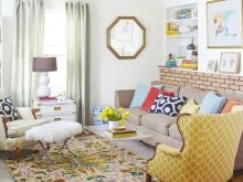 За да се спаси интериорът от ненужен стрес, в стаята трябва да се постави предмет, който се различава по цвета си. Примери за такива компоненти включват малки столове, тапицирани с ярък плат, пухкави цветни килими и боядисани декоративни вази..