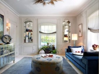 - класиката е доста популярна, този стил се характеризира с лаконизъм, наличието на геометрични форми и строги линии. Няма претенциозен декор, така че обикновено бяло платно често се използва като основа. Елегантните шарки в класически стил могат да го допълнят;