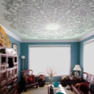 Можете също така да изберете тавани с шарки, където някоя част, например, един от блоковете, ще бъде украсена. Това ще създаде интересен ефект, основното е, че моделът се комбинира с друг декор в интериора..