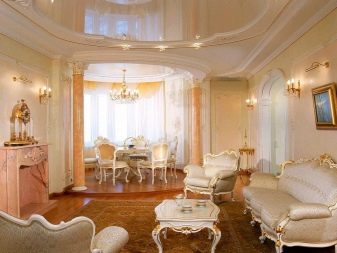 - сатен – те нямат толкова забележим блясък, колкото лъскавите, по -скоро е светъл перлен оттенък. Такъв таван може да се използва в много интериори, той върви добре с изобилието от текстил в обстановката..