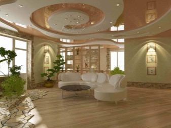 Многостепенните тавани се състоят от няколко блока, въпреки че най-популярният вариант е на две нива, тъй като други могат да изглеждат доста тромави и не са подходящи за всички стаи..