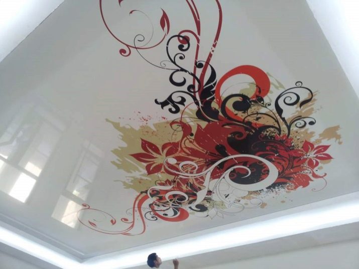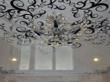 Интересен вариант са таваните с чертежи, но те трябва да се използват с повишено внимание. Тъй като различни изображения вече присъстват в интериора на други повърхности, картината на тавана може да бъде неподходяща и да затрупа атмосферата. Но ако дизайнът е склонен към минимализъм, тогава рисунката на тавана ще изглежда оригинална..