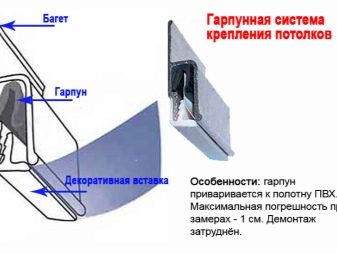 Ако се използва харпун, тогава материалът по ръбовете се доставя със специален подсилен кант. Той се вкарва в пролуката за багети с шпатула и се заключва на място.