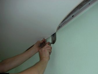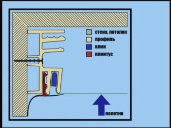 За използване на самозатягащата се система не са необходими допълнителни инструменти. Платното се поставя в слота на профила и се фиксира там, а останалата излишна част просто се отрязва. Когато използвате такива крепежни елементи, няма да е възможно да демонтирате тавана и след това да го инсталирате отново..
