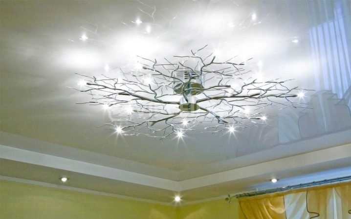 Централният полилей е фиксиран със специални крепежни елементи, докато всички ненужни детайли са скрити зад повърхността на тавана. Изборът на полилей зависи от стила на дизайна на стаята. Тя може да бъде класическа или модерна, но трябва да се слее с декора..