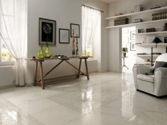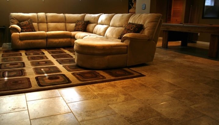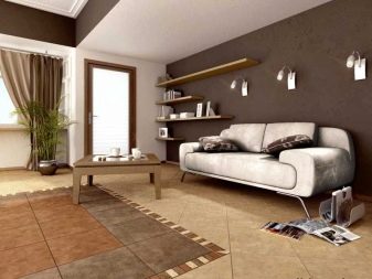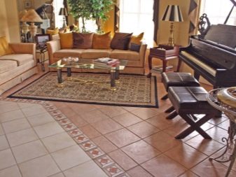 - Тактилни усещания. Плочките са студени на допир, особено през мразовития сезон. Ако възнамерявате да украсите подовете на хола й, помислете за закупуването на пищен, топъл килим. Това ще направи атмосферата по -удобна, но този елемент не е подходящ за всички стилове..