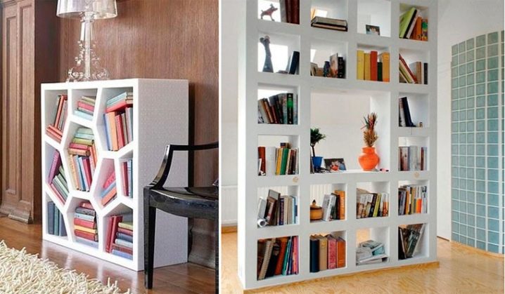 В малки пространства оставете своя избор на рафтовете, вградени в нишите. В хола е по -добре да подредите до стената с телевизор. Затворените също са добри за малки стаи, освобождават стаята от ненужни предмети, като по този начин оставят пространство и „въздух“.
