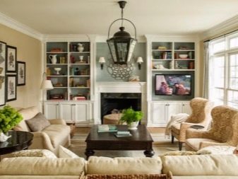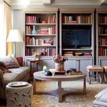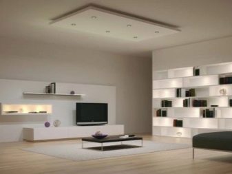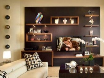 В малки пространства оставете своя избор на рафтовете, вградени в нишите. В хола е по -добре да подредите до стената с телевизор. Затворените също са добри за малки стаи, освобождават стаята от ненужни предмети, като по този начин оставят пространство и „въздух“.