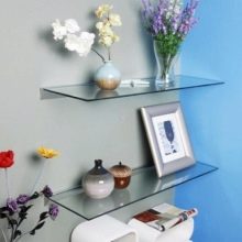 - Затворените или остъклени стенни рафтове ще се впишат добре в модерен интериор; те могат да бъдат прозрачни, матови или с шарка. Те ще изглеждат особено стилни с подсветка..
