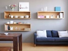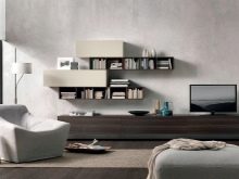 Разположението на такива рафтове зависи от ергономичността на цялото пространство и от практическите нужди на собствениците. Например, над телевизора можете да окачите затворени стилни лъскави стени, за да съответстват на цвета на стената, които могат да бъдат пълни с дискове, USB кабели и елементи, необходими за телевизор или видео плейър..