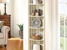 - Често се купуват в хола, където се намира основното място за съхранение на книги, предмети на декора, работни папки или документи. В малка стая за предпочитане са отворените рафтове по стените. Можете да ги закачите над телевизора или пред него над дивана. Ъгловите ъгли също спестяват място, поставете ги в ъгъла до прозорец или врата.