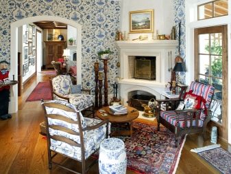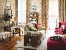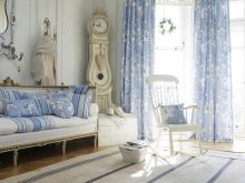 Съчетава се добре с други текстилни елементи на интериора в малко цвете, обикновена лента и клетка, подобна на домовете, направени на станове на ръка и използващи най -примитивните техники за оцветяване в по -ранните векове.