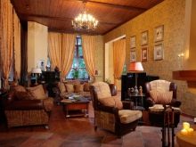 Свещници със свещи, керамични вази, скулптури на животни, книги, модели на платноходки, антични телефони, стари съдове и часовници, бродерия, юргани от пачуърк, всякакви ръчно изработени, дори наргиле създават неповторима атмосфера на комфорт в стаята.