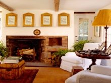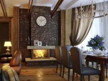 Огромна роля в селския стил играе камина – от миниатюрна до грандиозна, от малка до половин стая под формата на печка. Разбира се, в градски апартамент на обикновен етаж на висок етаж, ще трябва да го направите без него или да го замените с електрически. Но в частна къща или на последния етаж на къща, където е възможно да се създаде камина, е наложително да се направи, като се обмисли дизайнът и декорацията в интериора.