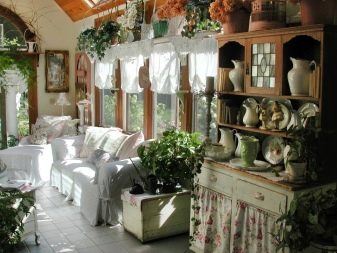 Завесите в селски стил могат да бъдат много прости под формата на правоъгълник в неутрален цвят и по-сложни, многопластови, в изящно цвете, с ярки кантове в естествени цветове. Всичко зависи от това, което е избрано като акцент в стаята..