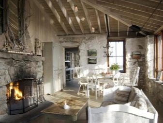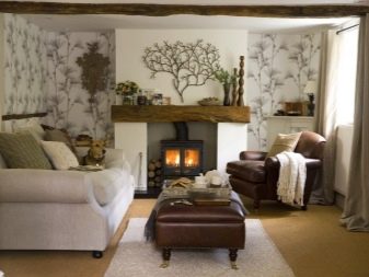 Огънят е свързан с най -дълбоките ни инстинкти, когато в примитивния свят е давал на човек топлина и защита. Оттогава, близо до открит огън позволява на човек да дойде в спокойно състояние, да се затопли в душата и тялото, да наблюдава променящите се езици на пламъка, постепенно освобождавайки напрежението на съвременния живот. Следователно почти всички дневни в селски стил имат камина, дори малка..