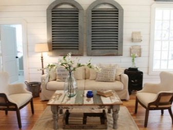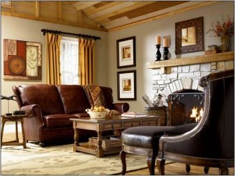 Всекидневната в селски стил, освен мебели, може да има много други елементи, които създават нейния уникален дух. Това са картини с сюжети за природата, лов, класически портрети на предци. Можете също така да украсите стаята със стари снимки на вашето семейство..