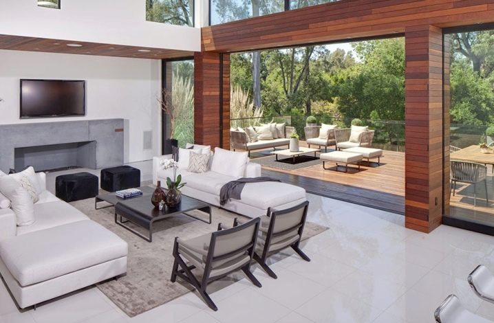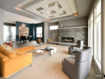 - стилът се характеризира с използването на подиуми и различни издигания, например, една или две стъпала, което добре подчертава зонирането на пространството на голяма стая;