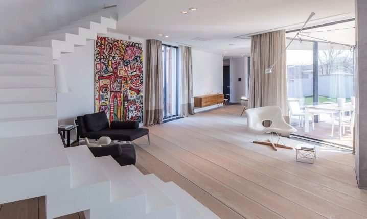 Стилът е идеален за тези, които искат да увеличат максимално пространството, както и да минимизират всички детайли, запазвайки само най -необходимото и практично в интериора. Благодарение на тази посока се създава атмосфера на почивка и релакс от суматохата на града и трептене пред очите на различни картини, но тази опция рискува бързо да се отегчи поради монотонността си. Материалите, които обикновено се използват в тези стилове, са стъкло и метал. Те са типични варианти за декорация на стени и подове, както и за декориране на мебели и други интериорни елементи. Основната цел на тяхното използване е да подобрят осветлението и визуално да увеличат пространството на стаята..
