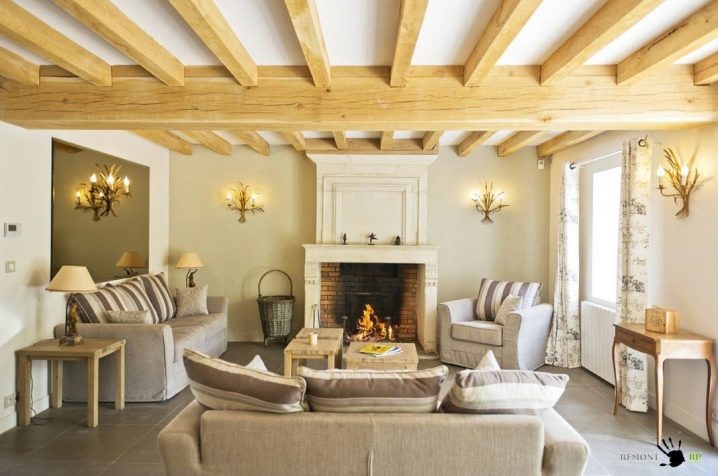 - Дневните от дървен материал в рамка или дървена къща не могат да имат класически интериор. За декорация е по -подходящ селски стил. Проектите на такива къщи са доста често срещани и са популярни при строителството на вили..