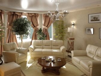 - На най -изгодното място в стаята е обичайно да се постави това, което ще даде на собствениците комфорт и удобство – мека мебел. Необходимият брой фотьойли, дивани, пулове създават уютна атмосфера.