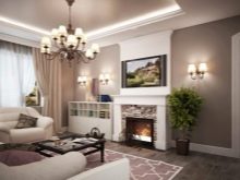 Помислете внимателно за осветлението на бъдещата всекидневна в частна къща, тъй като естествената светлина не винаги ще осветява стаята. Вечер най -силно се усеща липсата на светлина. Този въпрос трябва да се подходи подробно и да се оборудва стаята с голям брой лампи, предоставяйки възможност да се отпуснете вечер в стая с умерено количество светлина..