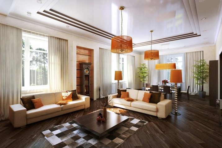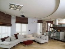 - Разделяне на пространството с помощта на многостепенни опънати тавани, това визуално ще разшири стаята и ще й придаде завършеност.