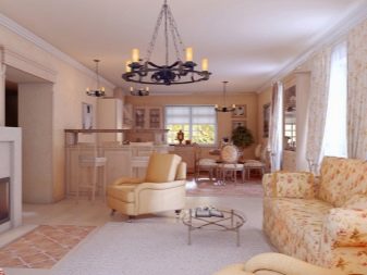 Палитрата за стил е избрана от меки нюанси, като основният акцент е върху текстила, завесите и тапицерията, създавайки хипнотизиращ ефект. Декорациите и тапетите вървят добре заедно, те придават много изразителност, особено при използване на linkrust и фрески.