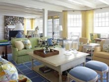 - На най -изгодното място в стаята е обичайно да се постави това, което ще даде на собствениците комфорт и удобство – мека мебел. Необходимият брой фотьойли, дивани, пулове създават уютна атмосфера.