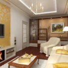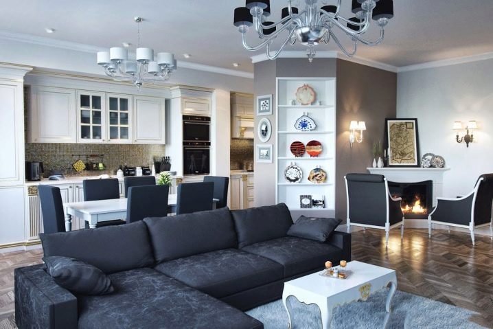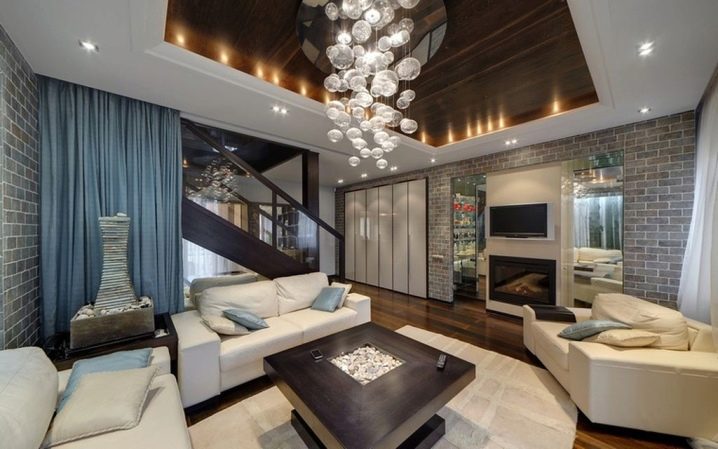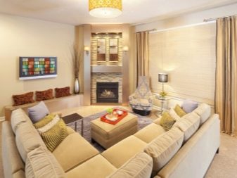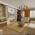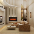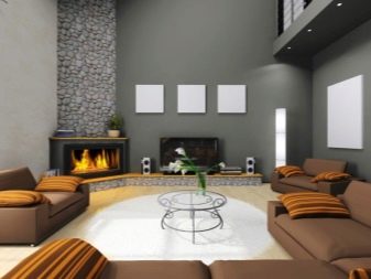Ако размерът на хола позволява, можете да изберете специална зона за инсталиране на камина и мебели (меки столове, малка маса). Останалите мебели са подредени така, че да не пречат на свободното движение из стаята и да съответстват на основната дизайнерска идея..