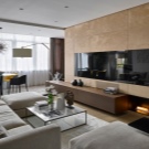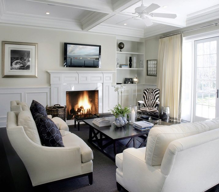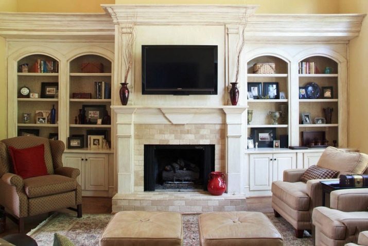 Когато има желание да има камина и телевизор в хола, е необходимо да се обмислят възможностите за тяхното поставяне, като се вземат предвид размерите на стаята и нейният интериор. Ако нито един от елементите не е предпочитан, препоръчително е да ги изберете с приблизително еднакъв размер, в противен случай или камината, или телевизорът ще привлекат вниманието към себе си.