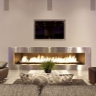 - Модерни. Всяка мебел изпълнява определена функция. Изкуствената камина, вградена в стената, не привлича много внимание. Предпочитание се дава на различни фалшиви камини с ясна геометрия.