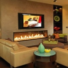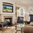 Много често срещан вариант е да инсталирате телевизор над камина. Много експерти обаче не съветват да правите това, тъй като окото ще се втурне между огъня на камината и екрана. И това е досадно. Разположението на телевизора пред камината също не е особено успешно: отраженията на огъня ще се отразят на екрана, което ще попречи на спокойното гледане на любимите ви програми..