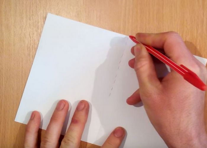 - Taita arkki pystysuoraan puoliksi, avaa se ja taivuta oikea oikea ja vasen kulma reunusviivaan.