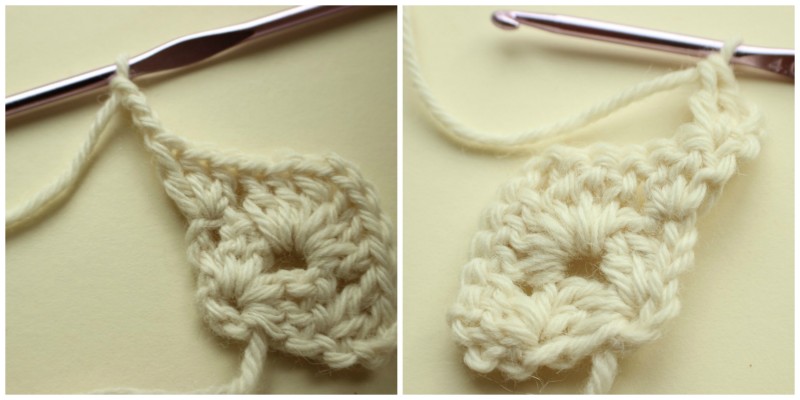 Perusta, kuten monissa tapauksissa, on yksi virkkaus, rivillä 3 ja 4 ne on yhdistetty täydellisesti sarakkeisiin, joissa on jo virkattu.