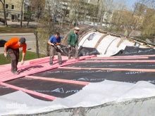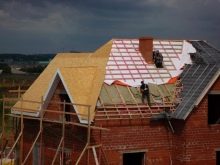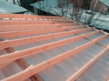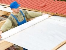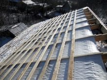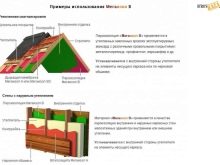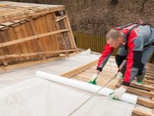 При полагане на този материал върху склоновете на покрива трябва да се направи припокриване от 15 см. Цялата работа трябва да се извършва, движейки се отдолу нагоре. В този случай ставите трябва да бъдат затворени със специална лента, която в бъдеще ще бъде допълнена с ламели..
