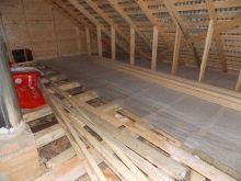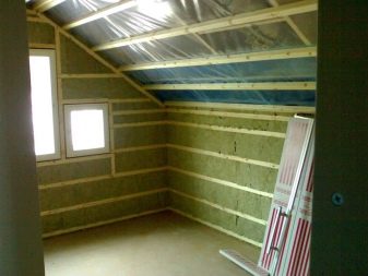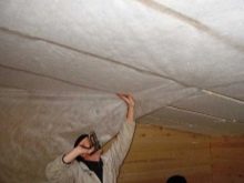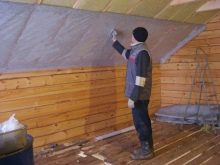 - След това можете да продължите с инсталирането на довършителния материал. Тя трябва да бъде положена върху монтираните ламели или метални части. На този етап трябва да се има предвид, че трябва да има малка празнина между финала и пароизолацията..