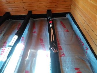 - Освен това върху материала за пароизолация трябва да се монтират метални профили. Вместо тях е допустимо да се използват обикновени дървени летви. Препоръчително е да изберете елементи с размер 40х50 мм.