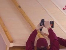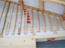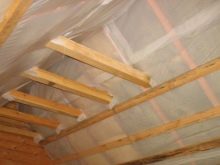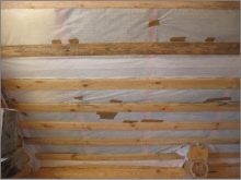 - Такъв филм трябва да бъде прикрепен към груба основа – обвивка или греди. В този случай материалът трябва да бъде насочен с гладката страна към изолацията. Всички образувани фуги трябва да бъдат затворени с уплътнителна лента – по този начин ще спасите слоя от появата на пукнатини.