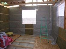 Този материал за пароизолация трябва да се постави върху изолацията. В този случай трябва да се гарантира, че вътрешната страна на филма е възможно най -плътна към топлоизолацията, а външната оставя малка празнина между пароизолацията и облицовката..