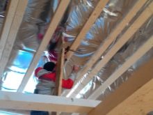 - При полагане е много важно правилно да се поставят пароизолационните листове. Отразяващата част трябва да “погледне” в жилищното пространство.