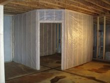 Освен това по време на монтажа в помещението трябва да се поддържа нормална влажност на въздуха.. Izospan FL Termo може да се инсталира в зони с висока влажност, например в басейни, бани и сауни. При такива условия този материал няма да претърпи деформация, но ще се справи перфектно с основните си задачи. Благодарение на него таваните, таванът или подът не се потят, а също и не гният..