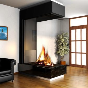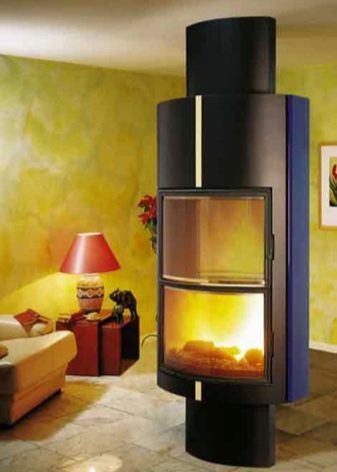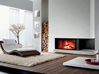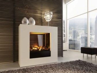 Камините се различават по доста оригинален дизайн в сравнение с обичайните опции. Липсата на много декоративни компоненти почти не разваля дизайна на продуктите. Производителите обръщат основно внимание на функционалните качества на моделите. Тези опции са подходящи за просторни и големи стаи..